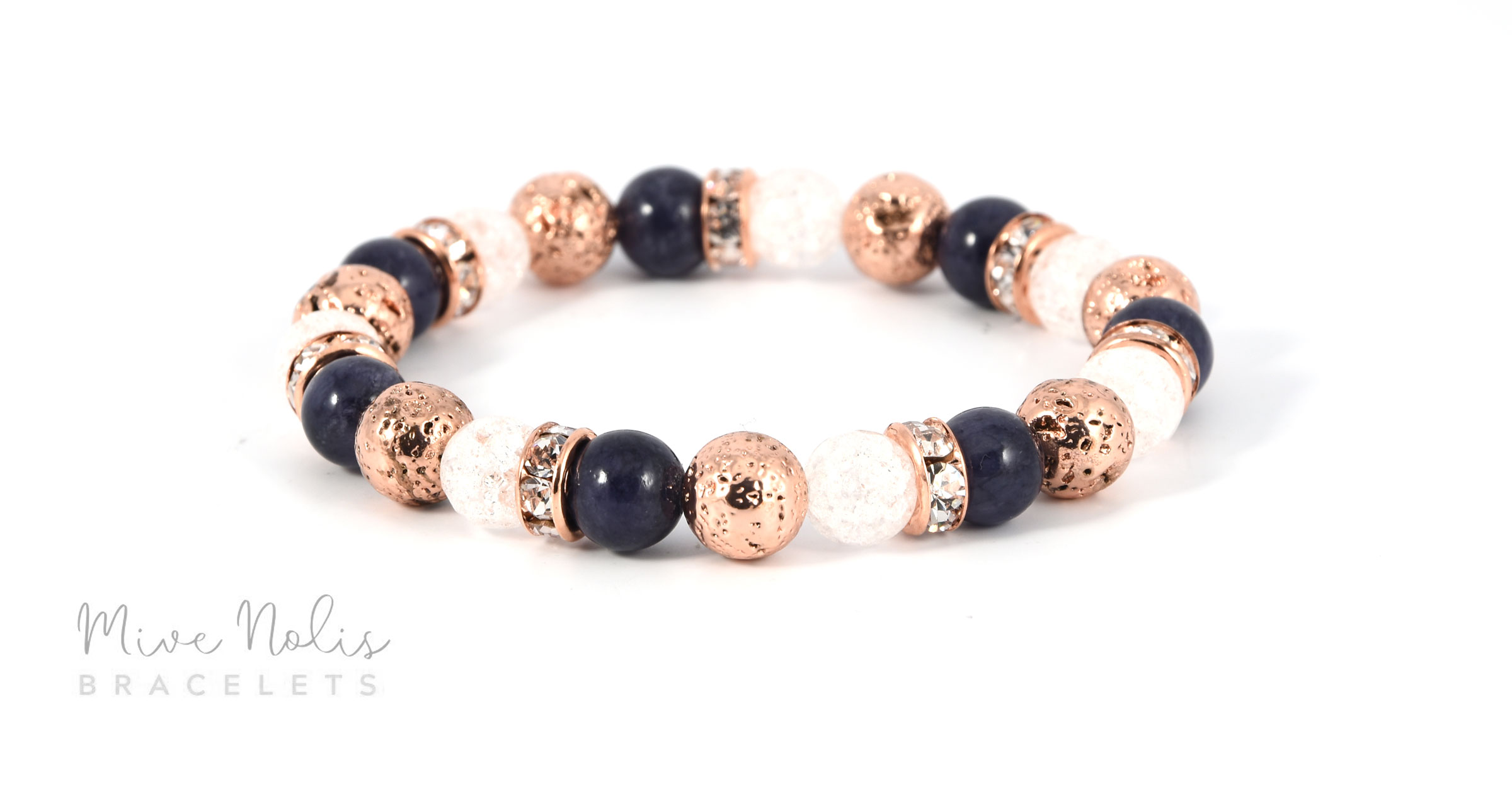 Jade-Lávakő-Hegyikristály ásványkarkötő, 8 mm-es ásványokból készült.