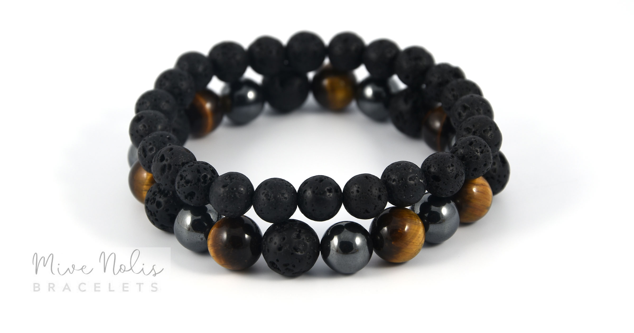 Lávakő-Tigrisszem-Hematit ásványkarkötő szett