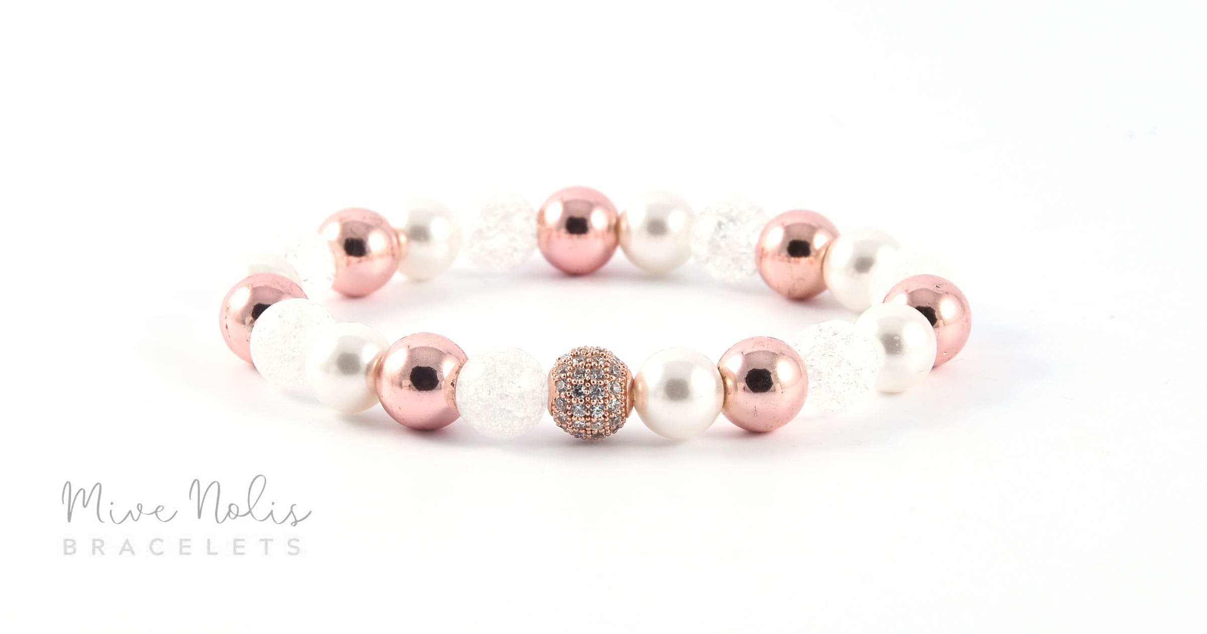 Swarovski-Hegyikristály-Hematit-Cirkónia ásványkarkötő, 8 mm-es ásványokból.