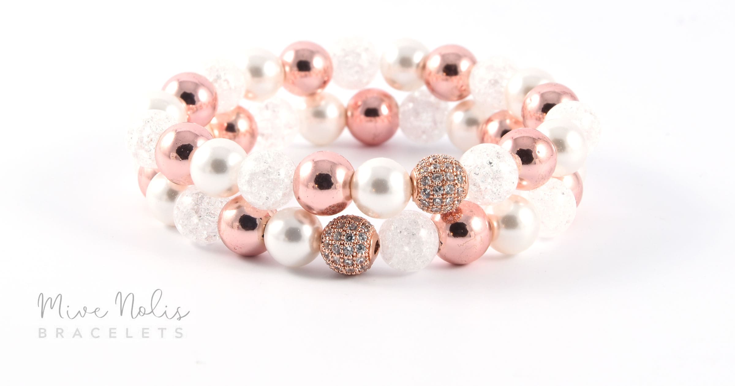 Kagylógyöngy-Hegyikristály-Hematit-Cirkónia páros ásványkarkötő, 8 mm-es ásványokból.