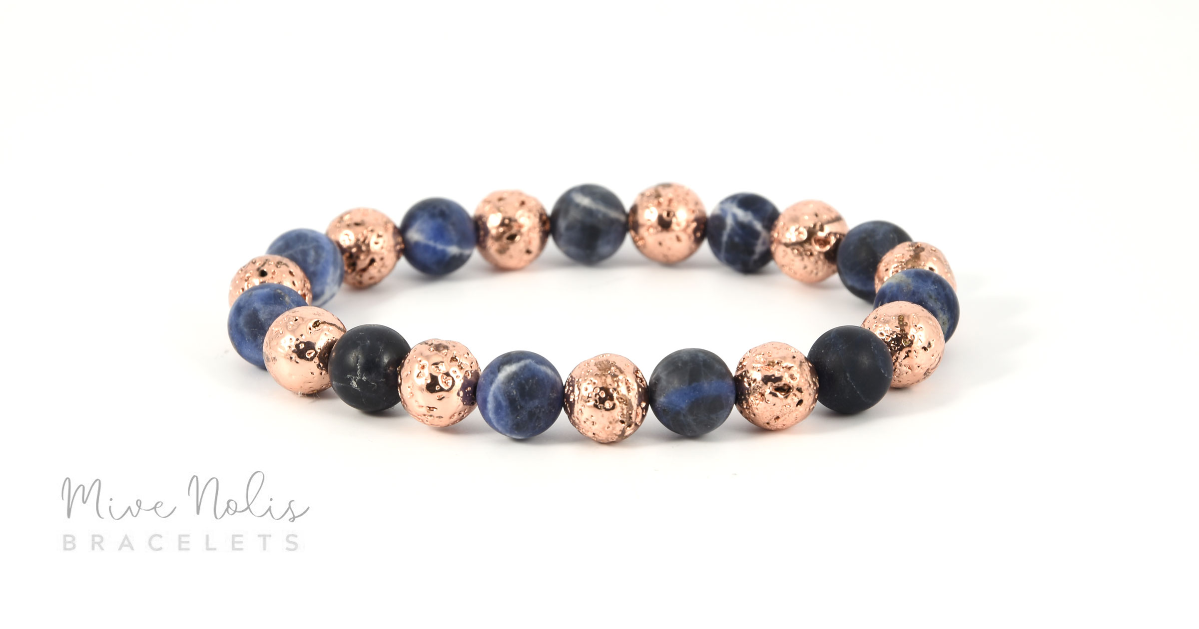 8 mm-es Szodalit, Rose gold színű Lávakő.